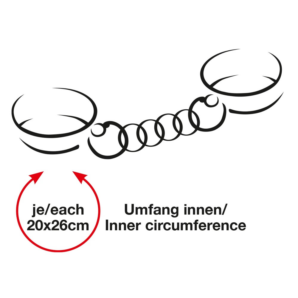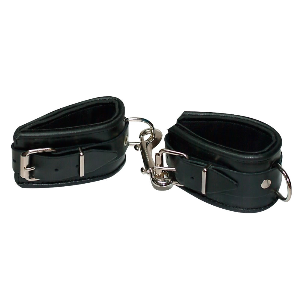 The cuffs are 6,5 cm wide, are stuffed with soft material on the inside and can be adjusted. The luxury accessory for all bondage fans.